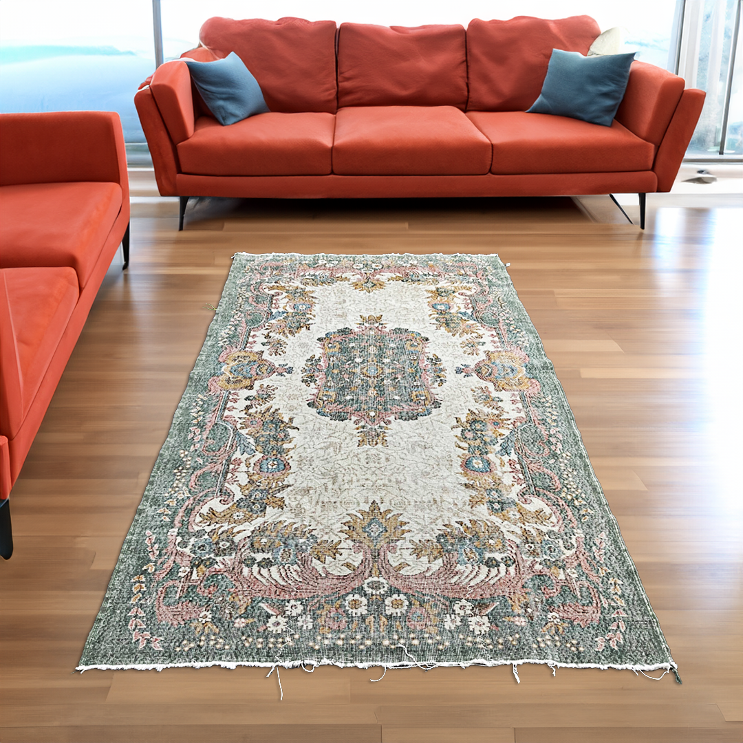 This carpet was woven by hand in Isparta region of Anatolia. Isparta carpet are very valuable and preferred carpets for hundreds of years. There are flowers motifs in the middle of the rug. Its surrounding are embroidered with leaf, branch and bud motifs. These motifs will bring the feelings of 70’s to your home. A piece that would look perfect in a suitable corner of your home.