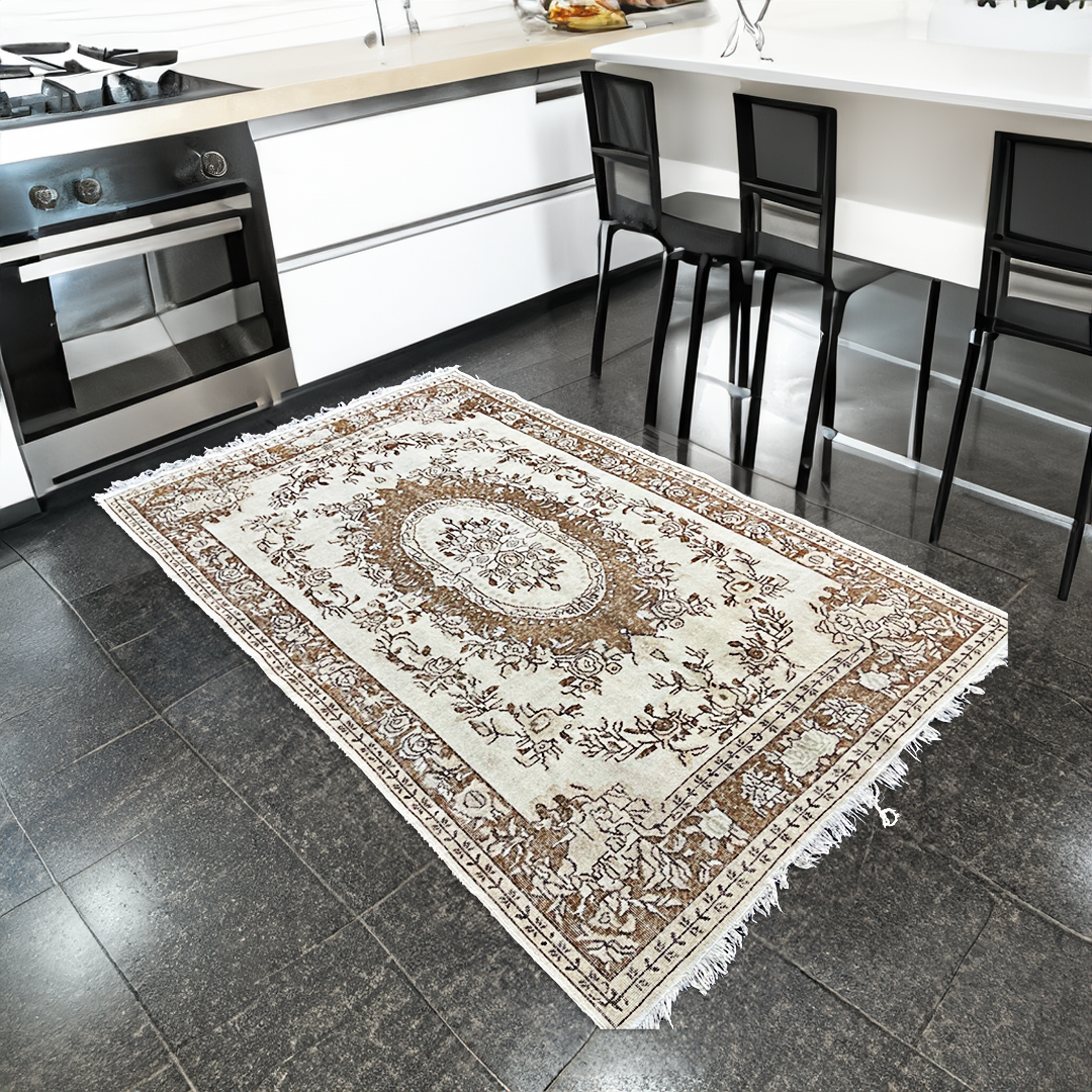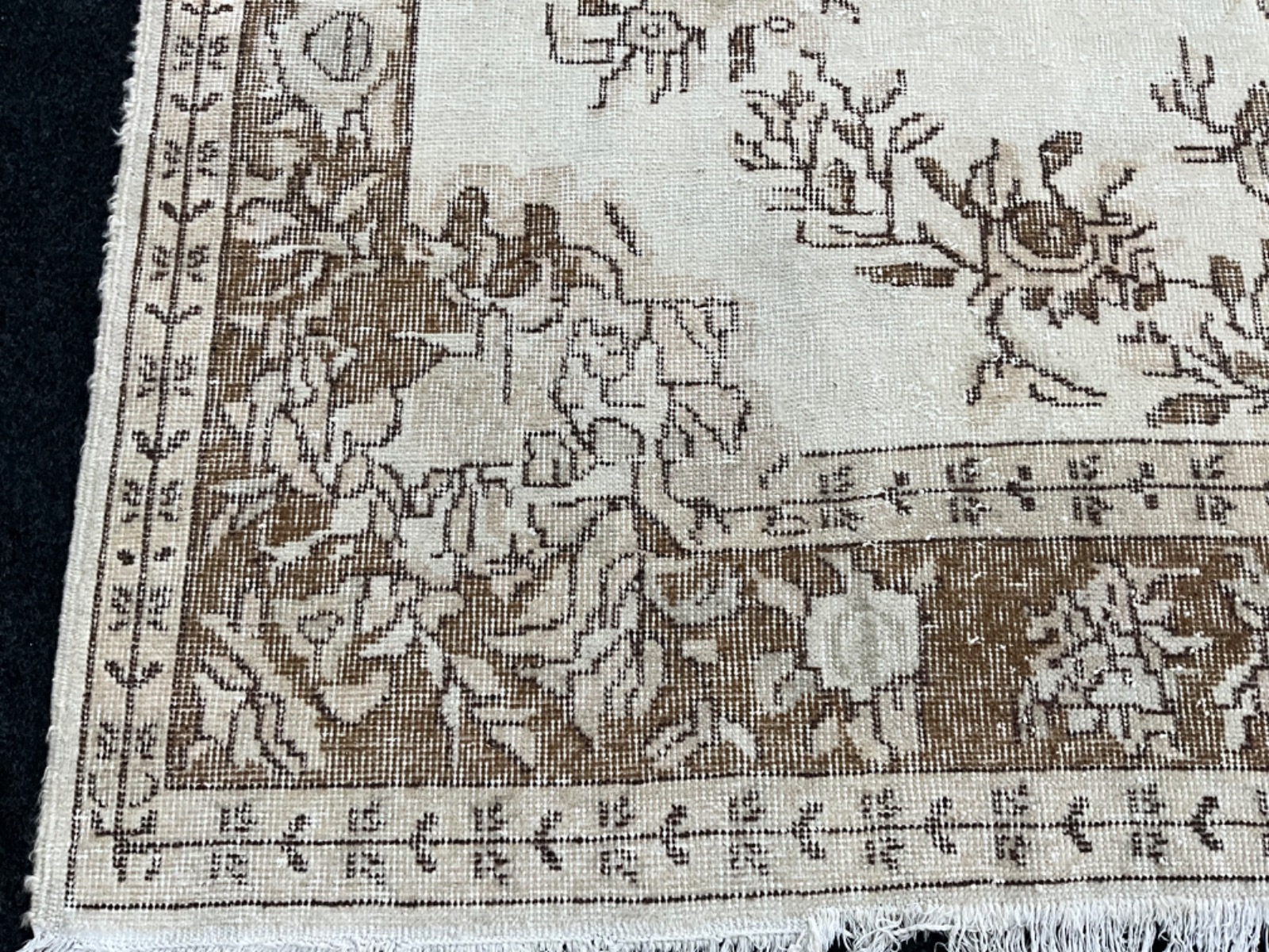 This carpet was woven by hand in Isparta region of Anatolia. Isparta carpet are very valuable and preferred carpets for hundreds of years. There are flowers motifs in the middle of the rug. Its surrounding are embroidered with leaf, branch and bud motifs. These motifs will bring the feelings of 70’s to your home. A piece that would look perfect in a suitable corner of your home.