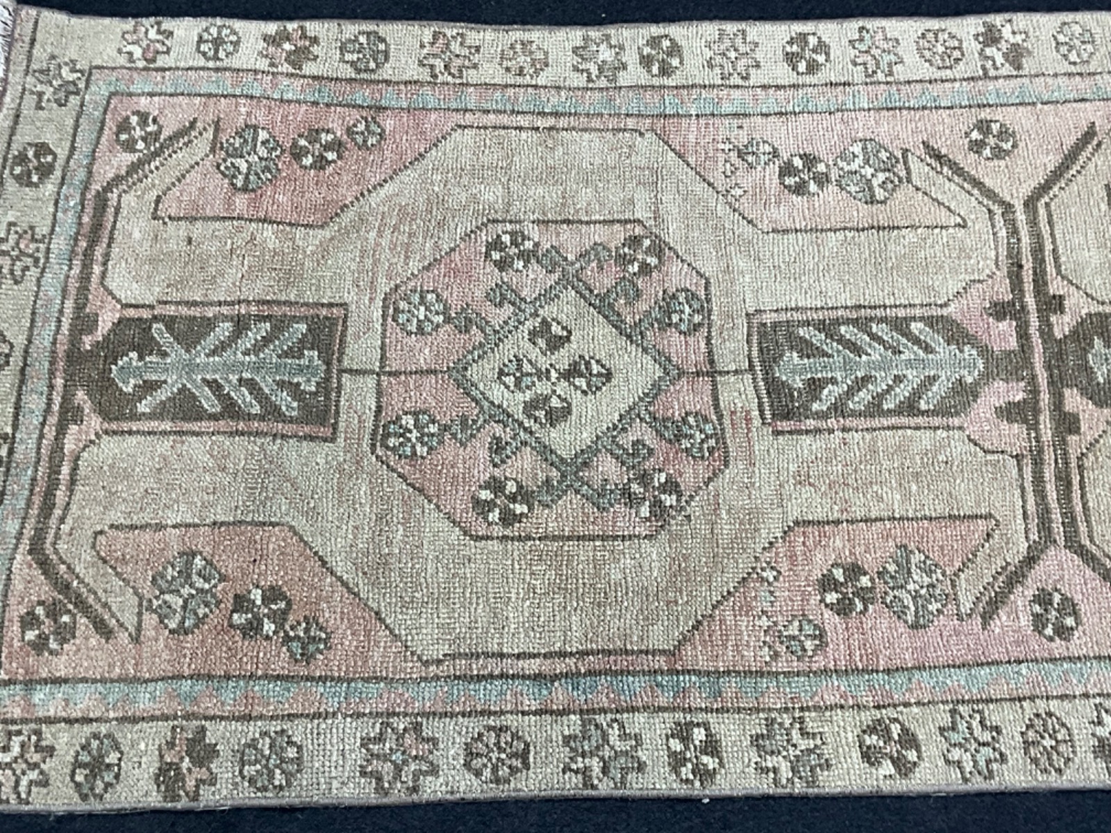 Rugseen in the images is approximately 50-60 years old muted dye Dosemealti carpet and professionaly washed and cleaned.